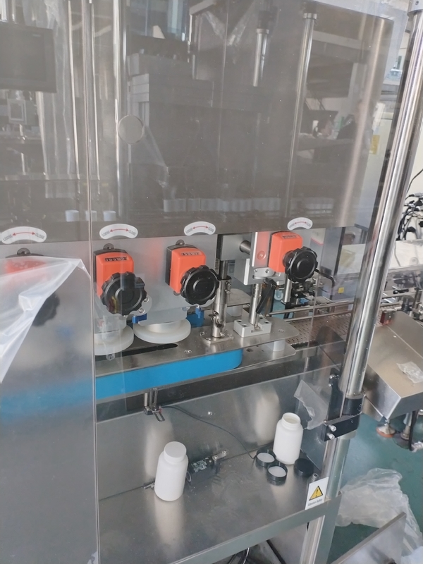 قرار دادن کلاه و محکم کردن: با استفاده از یک سیستم تغذیه، دستگاه کلاه ها را به دقت انتخاب می کند و آنها را بر روی دهان ظروف قرار می دهد، سپس برای پیچ زدن آنها به آنها می چرخد تا به سخت بودن مطلوب برسد.